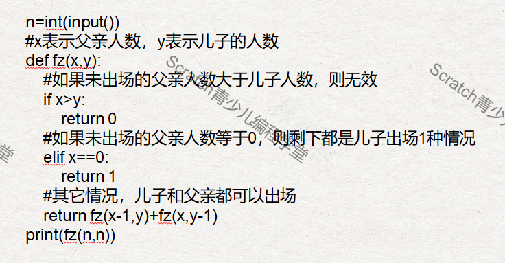 任意输入父子的对数n(3<=n<=15),计算并输出有多少种出场策略