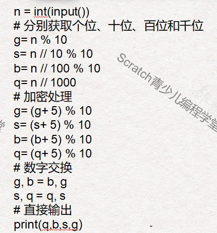 3). 现在任意输入一个四位数n(1000 <= n <= 9999),输出加密之后的数字。