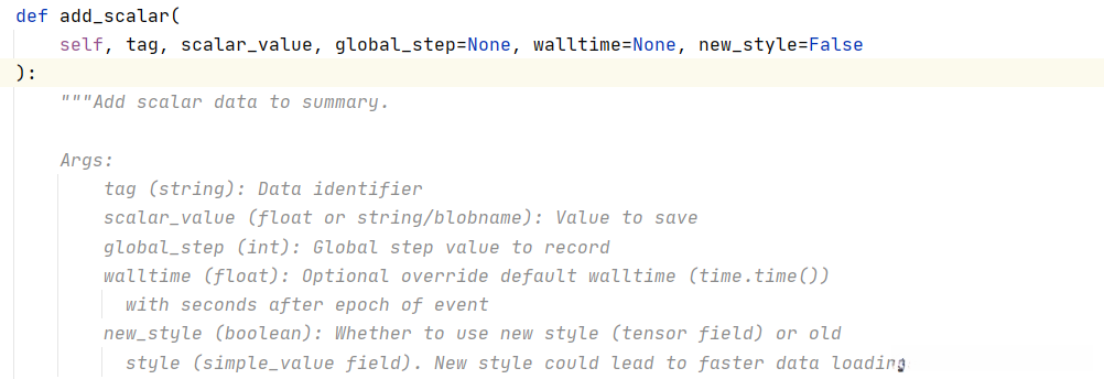 - 该类主要有两个常用方法,首先介绍add_scalar()方法: