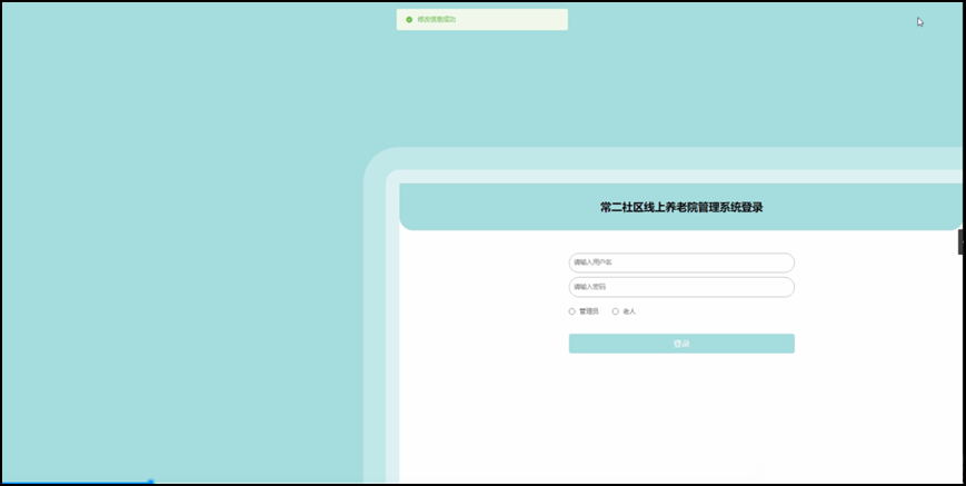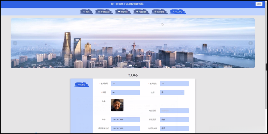 常二社区的线上养老院管理系统支持首页导航及一系列功能模块的使用(如个人信息中心)。该系统能够实现包括登录操作在内的一系列核心功能(如查看和更新个人资料)。所有功能均依赖于与后台服务器的数据交互来完成