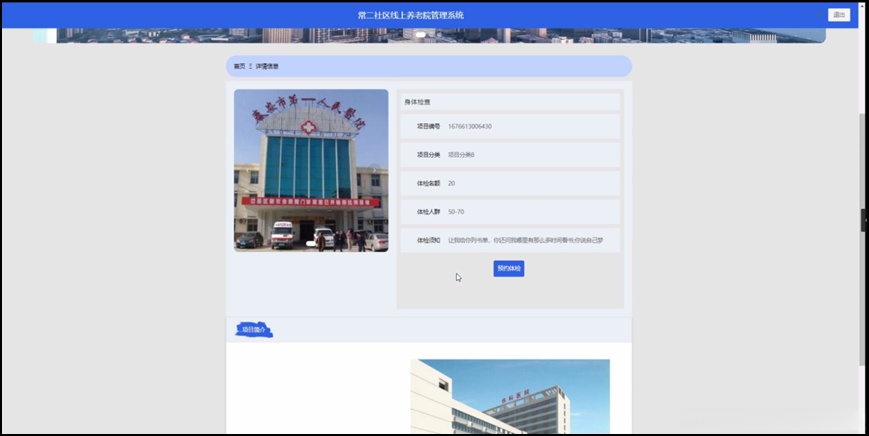 计算机毕业设计springboot常二社区线上养老院管理系统vi6909