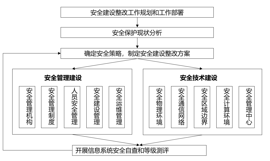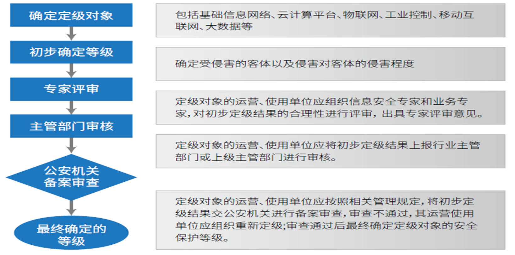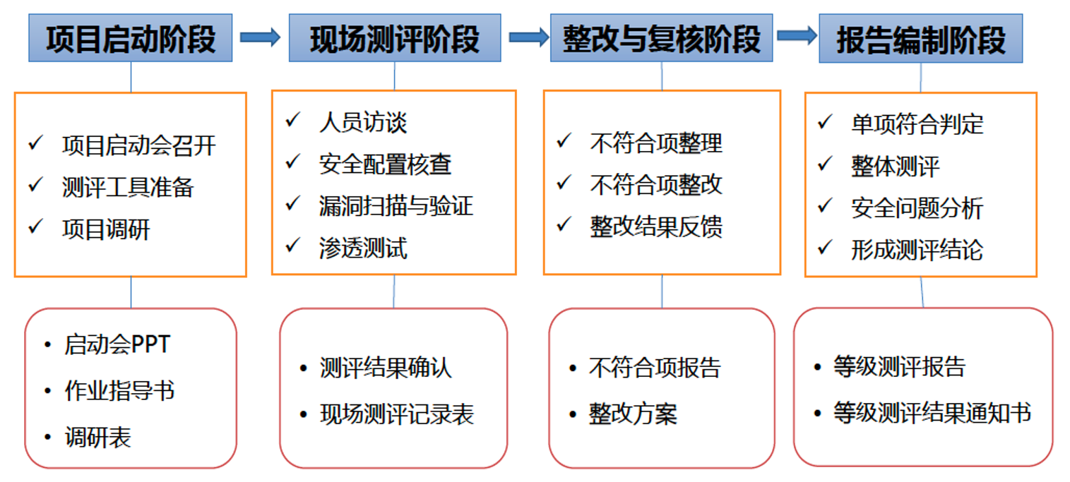 定级——备案——建设整改——等级评测——监督检查
