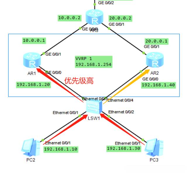 配置优先级(命令:vrrp vrid 数字 priority 优先级数字)