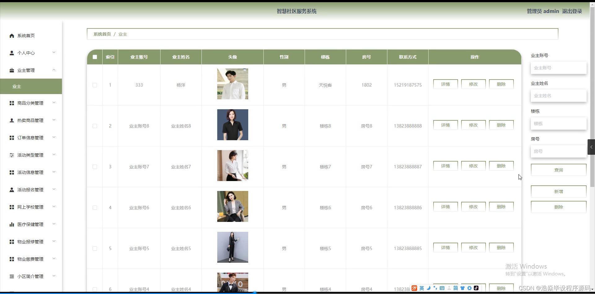智慧社区服务系统的建设对提升居民生活质量具有重要意义。首先,在线服务系统提供了全面的管理功能包:包括物业缴费、报修请求以及社区通知等内容模块,在很大程度上便利了居民的生活与工作节奏。其次,在线互动平台能够促进社区成员之间的交流与反馈渠道,在此过程中增强了管理者与居民之间的沟通效率,并为及时解决问题及收集意见提供了可靠依据;这不仅提升了管理透明度与参与感,还促进了社区治理的民主化发展。此外,在数据分析支持下结合智能决策工具的应用场景设置下;系统能够为管理者提供科学决策依据,并在此基础上优化资源配置并提高管理效能;从而实现了从单纯的人力资源配置向智能化配置模式转变的目标设定。最后该系统具备良好的可扩展性可以根据实际需求不断添加新的功能模块以适应不同规模社区的需求从而保证其持续更新和完善的状态运行;这不仅能够显著提升居民满意度和幸福感还能有效推动社区治理向更加精细化方向迈进成为实现可持续发展的重要保障措施之一