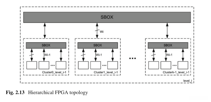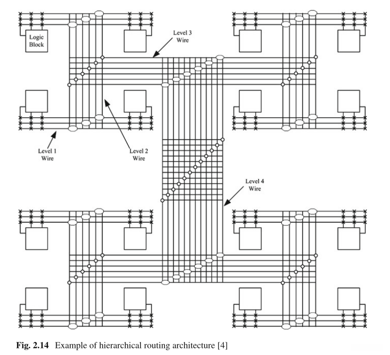 在分层体系结构(也称为基于树的体系结构)中,同一集群内的逻辑块之间的连接是由层次结构的最低级别的线段进行的。