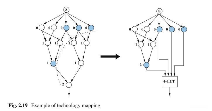 * 技术映射的输入是门级描述(如门级网表),它可以是由逻辑综合生成的,也可以是从其他设计来源获取的。技术映射的输出是更具体的门级网表,它描述了设计在目标FPGA上映射的低级元件和连线信息。