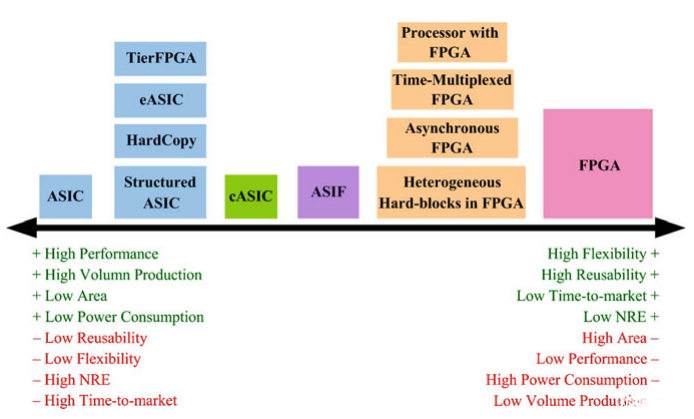 FPGA的所有这些主要优势都来自于它们的可重新配置性,这使得它们具有通用性和现场可编程性。但是,同样的可重构性是其劣势的主要原因;从而使其比ASIC更大、更慢且更耗电。