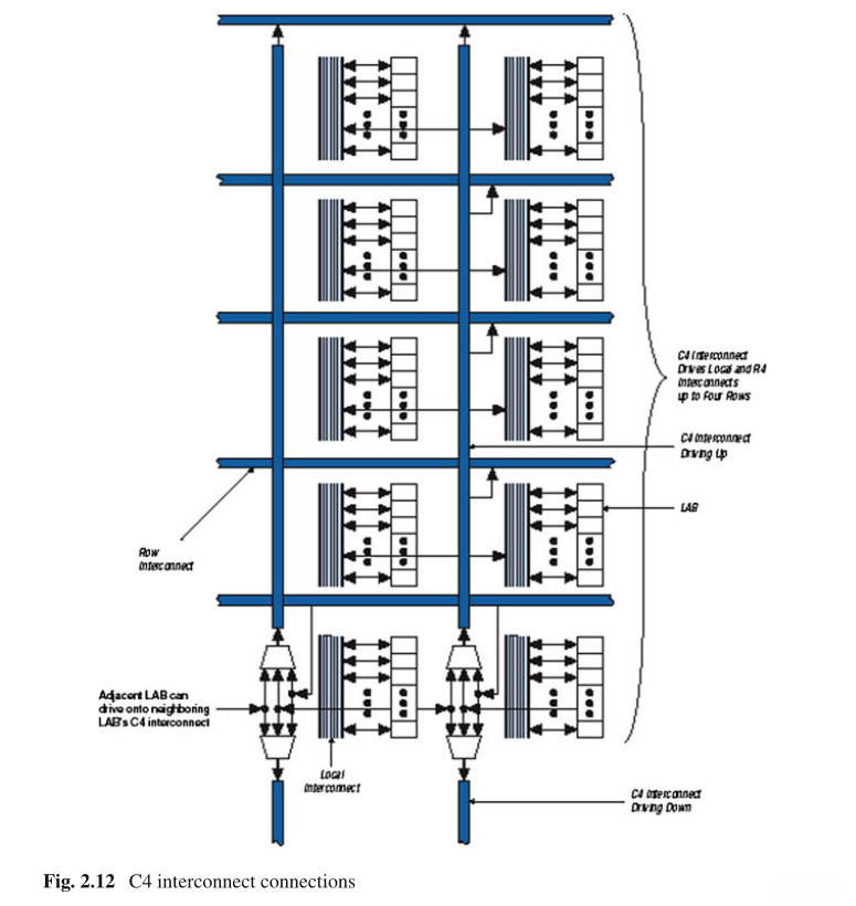 图2.5显示了传统的岛式FPGA架构(也称为基于网格的FPGA架构)。这是学术和商业FPGA中最常用的架构。