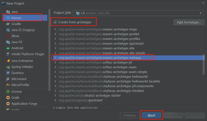 这里我们需要使用 Maven 自带的 web 项目模板。