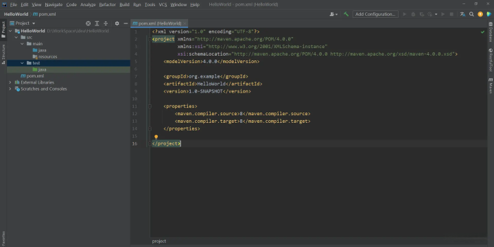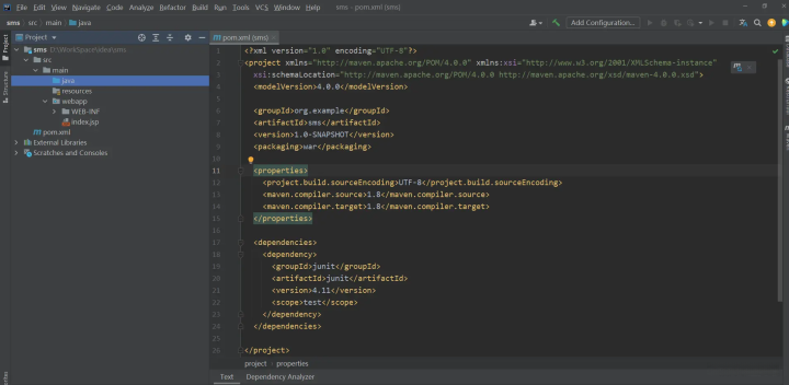 由于基于 Maven 的 Web 项目模板生成的项目的目录不够完整,在 main 目录中必须构建 Java 和 Resources 目录。
