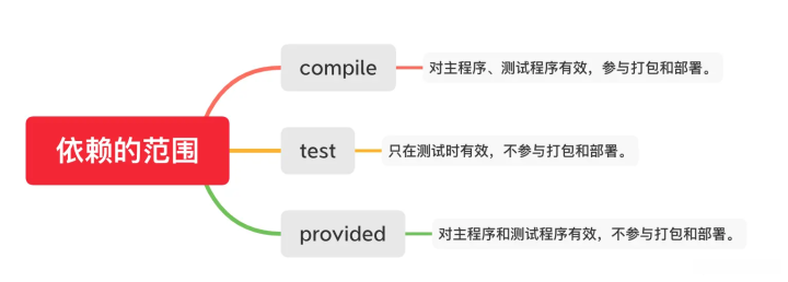 我们在配置依赖时,其实还有一个依赖的范围 scope:
