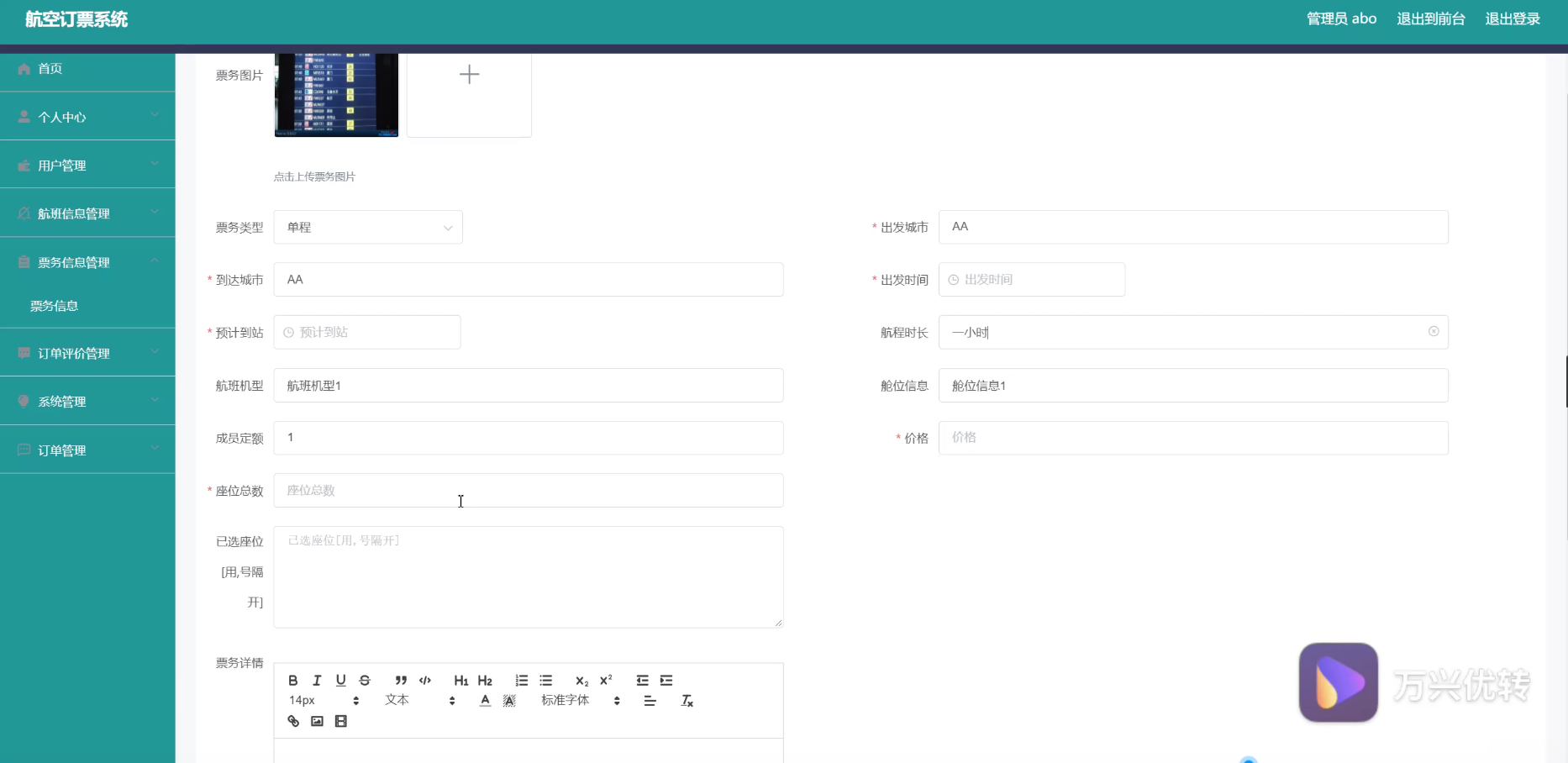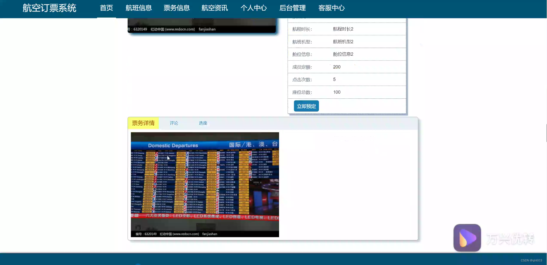 本系统旨在构建一个高效的自动化航空预订平台, 以适应当前航空运输业的发展需求. 该平台具备高效处理大量订单的能力, 并将为用户提供便捷高效的增值服务. 此外, 采用先进的评估机制, 用户能够对航班和座位进行评价, 并为同行提供参考意见.