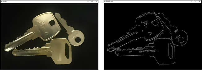 图8-17 myPyrMeanShiftFiltering.cpp程序中处理两次图像及Canny边缘