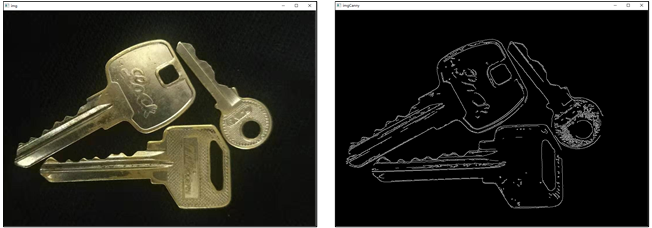 图8-15 myPyrMeanShiftFiltering.cpp程序中原图及Canny边缘