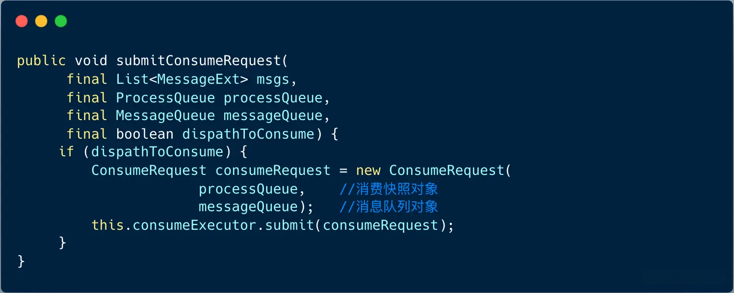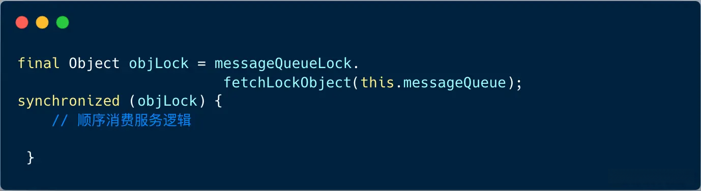 易于理解地执行监听器逻辑,在消息快照中定义的消费锁 consumeLock 用于保护 MessageQueue 对象免受 Rebalance 线程的影响:确保不会被 Rebalance 线程从当前 MessageQueue 中删除。