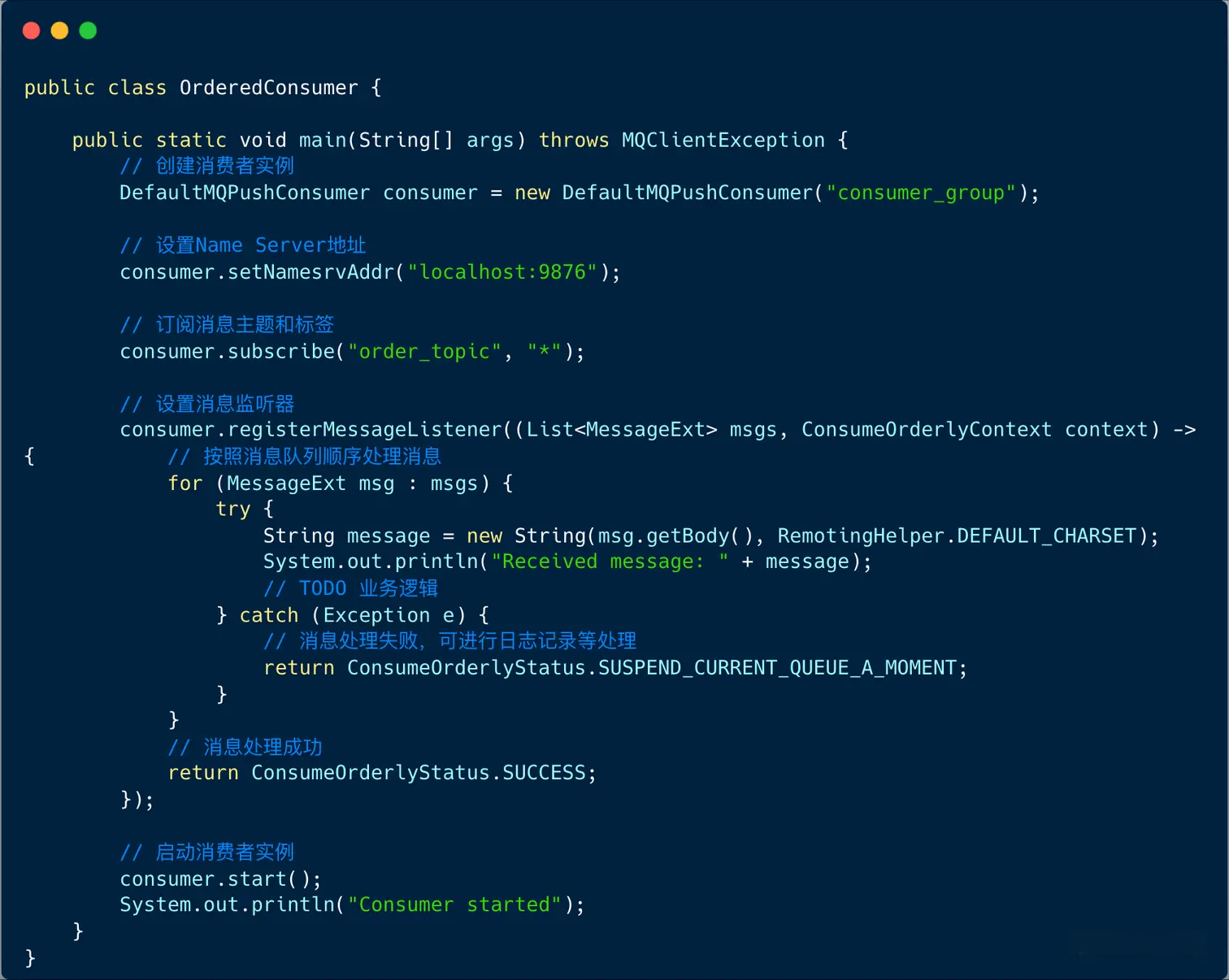 - 适用场景:主要适用于系统性能要求不高的情况下,并且任何一条消息都需严格遵循 FIFO 原则来实现发布与消费的场景。