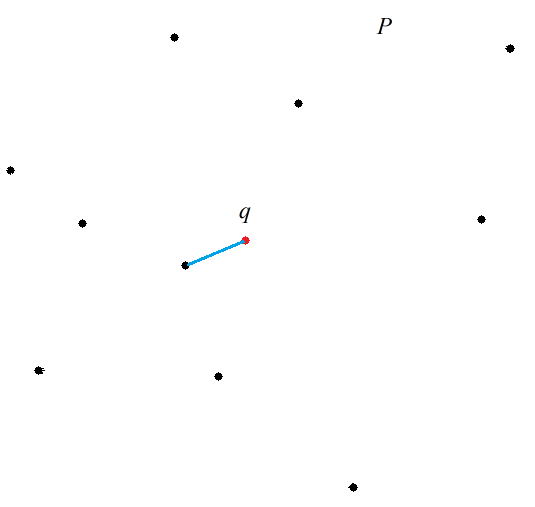 定义 1: 给定一拥有n个点的点集P,在此集合中寻找距离q 点最近的一个点。