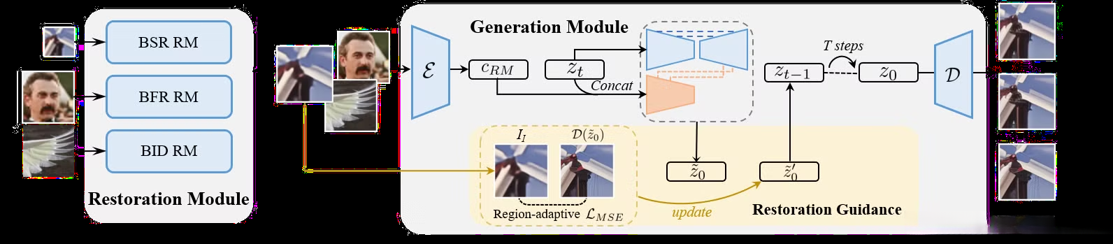 - 指导过程 :该模块基于区域自适应策略进行操作,在指导去噪过程中促使结果朝向高质量的条件图像 IRM 发展。
