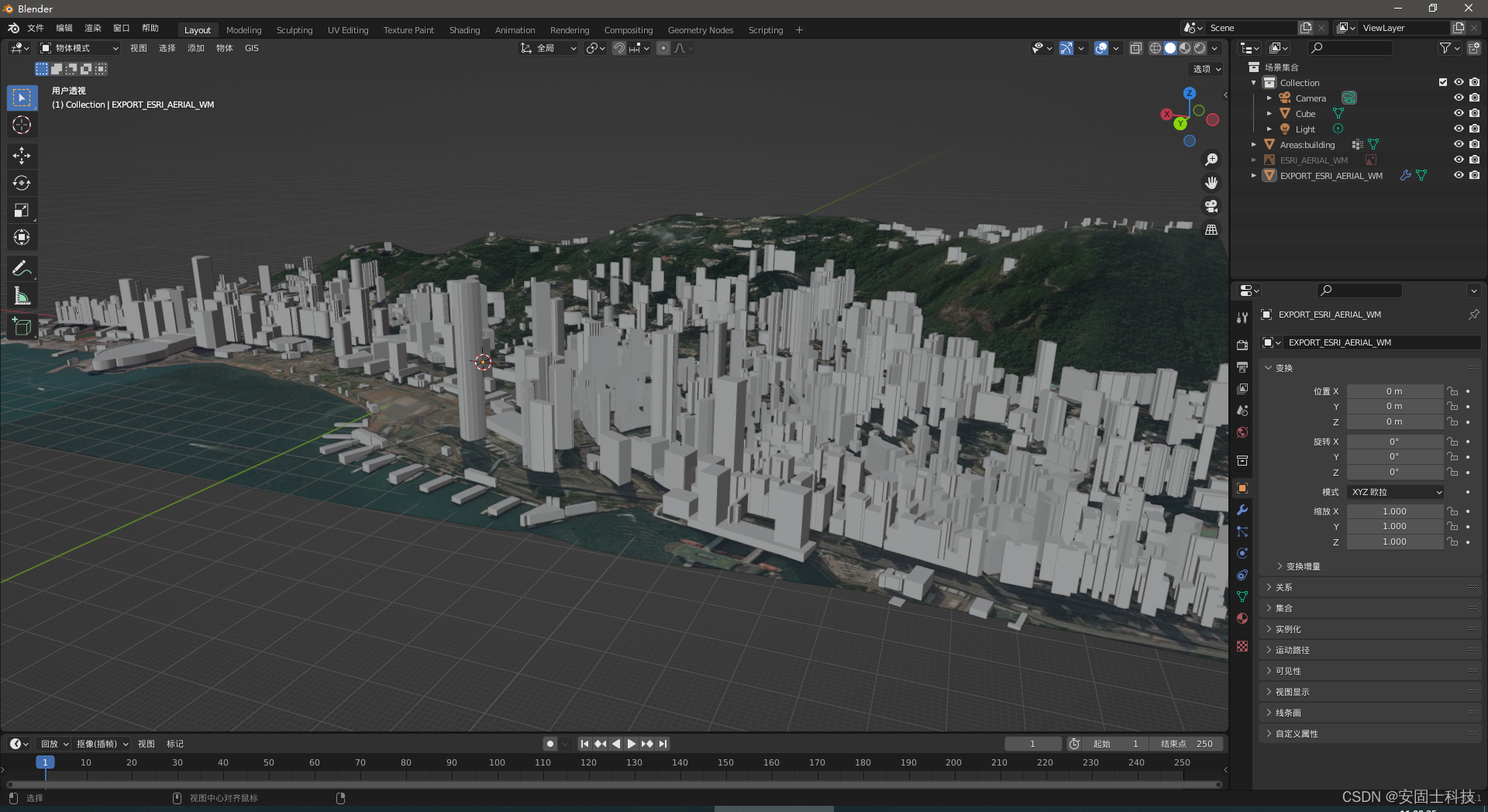 Blender是一款免费开源三维图形图像软件,提供从建模、动画、材质、渲染、到音频处理、视频剪辑等一系列动画短片制作解决方案。智慧工地、智慧城市开发过程中,需要建筑、机械、生态环境等模型,可以用Blender制作,制作完成后,导出为所需格式,加载到系统中,参与系统开发。下面介绍利用BlenderGIS插件生成城市建筑群模型。