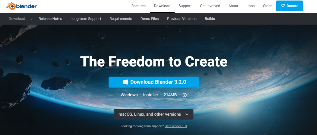 下载Blender软件。进入官网blender.org - Home of the Blender project - Free and Open 3D Creation Software,根据电脑的操作系统下载对应的版本,可以选择安装版本和绿色版,绿色版解压后直接可以运行。
