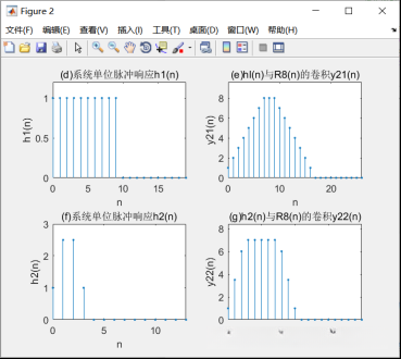 图e,g分别对应系统h1(n)和h2(n)对x1(n)=R8(n)的图像。