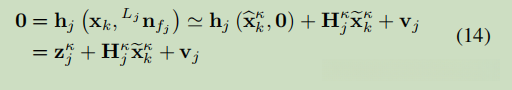 上式的A(.)定义在式(6),对于第一次迭代(即扩展卡尔曼滤波器的情况),