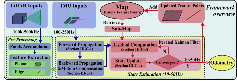 为了使激光雷达导航适用于无人机等小型移动机器人,我们提出了FAST-LIO,一种计算效率高、鲁棒性的激光雷达惯性里程计软件框架。更具体地说,我们的贡献如下: