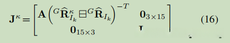的最后三个块元素(对应的是陀螺仪偏置、加速度计偏置和外参)为零,反向传播可以简化为: