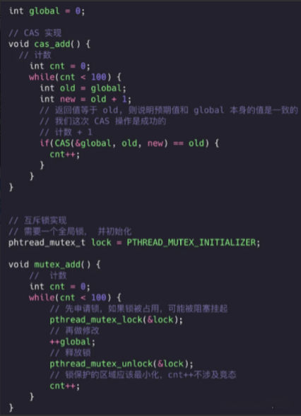 注意,上面的 CAS 函数实际上是一条原子指令,那么该如何使用呢?