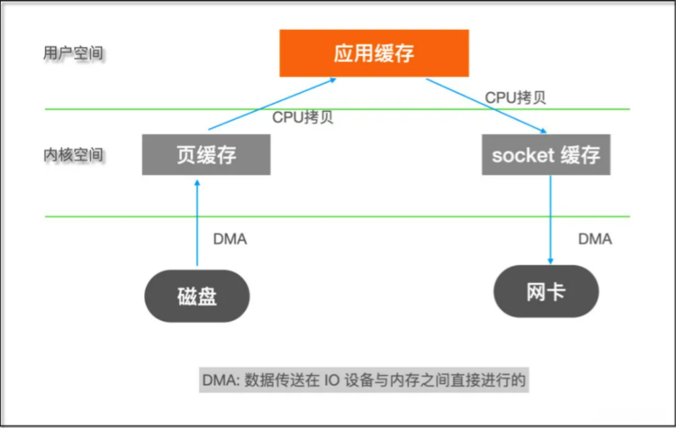 如果能够实现数据在内核缓存之间的传输,则不仅能够减少数据拷贝次数,还能够防止系统内外态之间的状态切换。