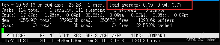 下面以 top 命令的输出例,对 CPU 各项主要指标进行说明: