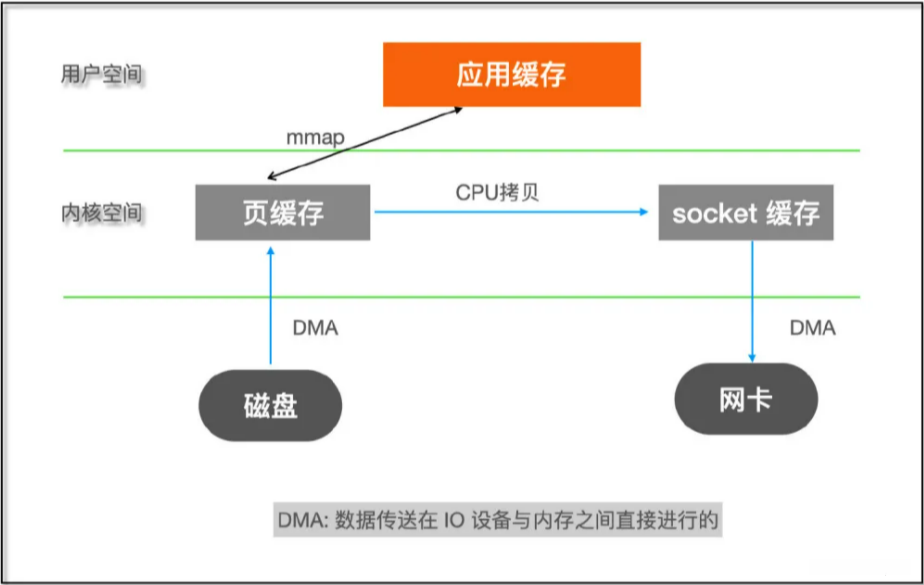 sendfile是由Linux 2.1版本提供的;数据无需通过用户态而直接从页缓存复制到socket缓存;同时因为与用户态完全无关而减少了上下文切换。