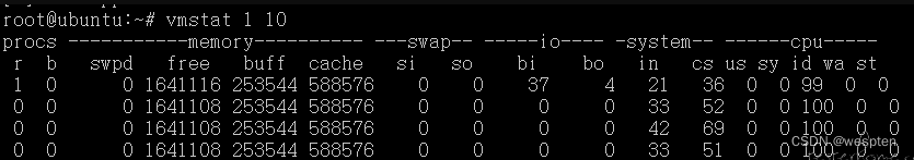Linux 系统在计算系统平均负载时会将 CPU 处于等待 I/O 操作状态的时间纳入考量,在观察到系统的平均负载过高时,则可以通过 wa 命令来判断系统的性能瓶颈是否是由过量的 I/O 操作引起的。