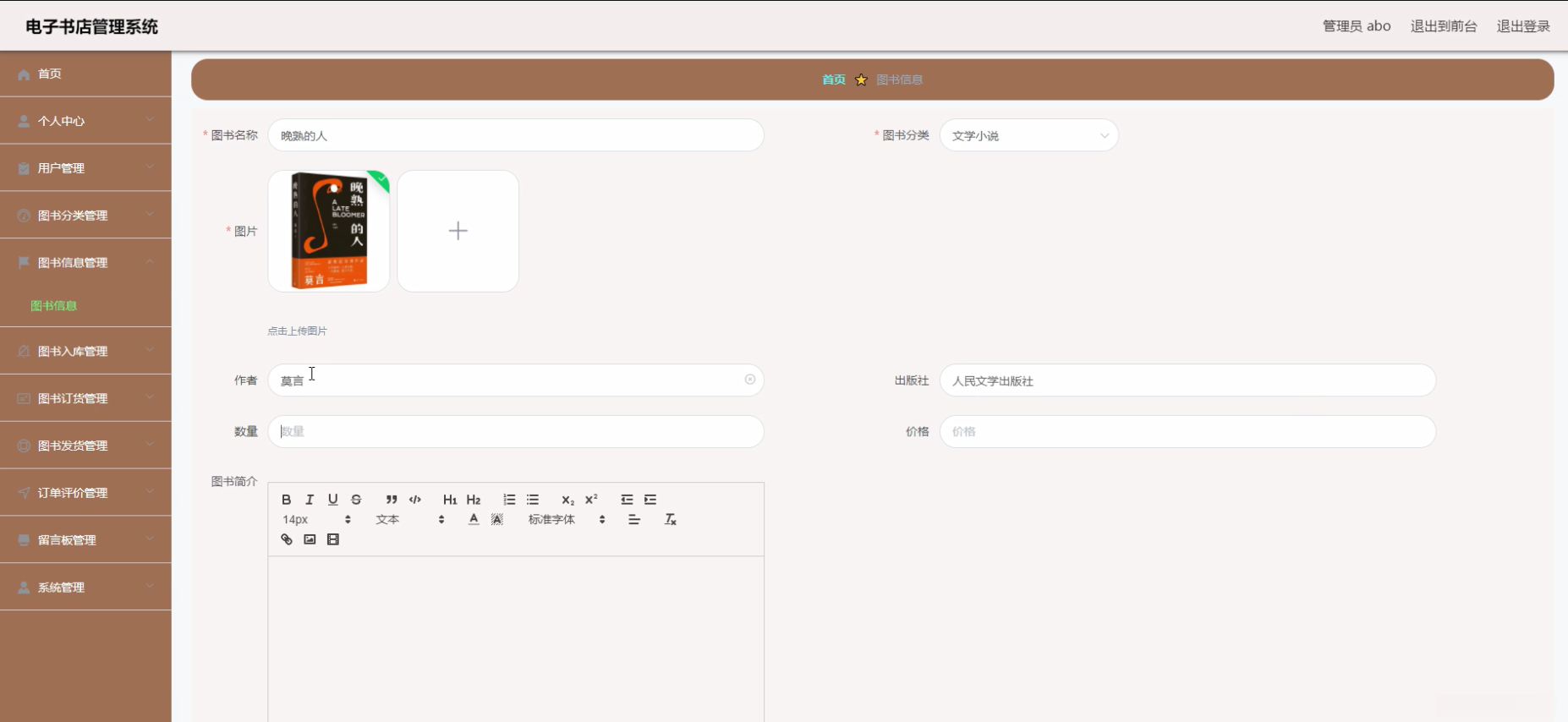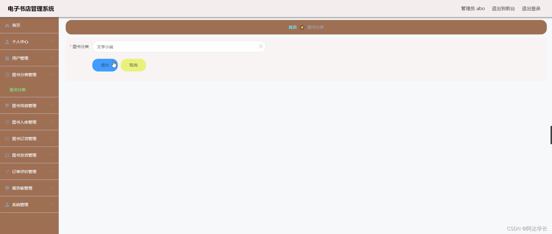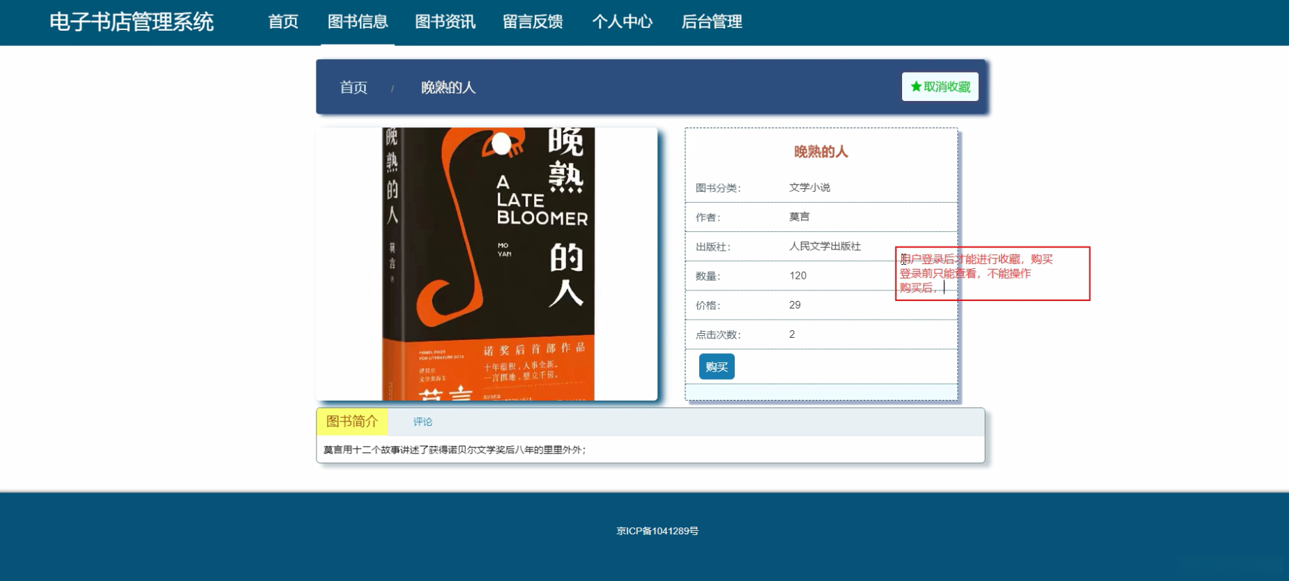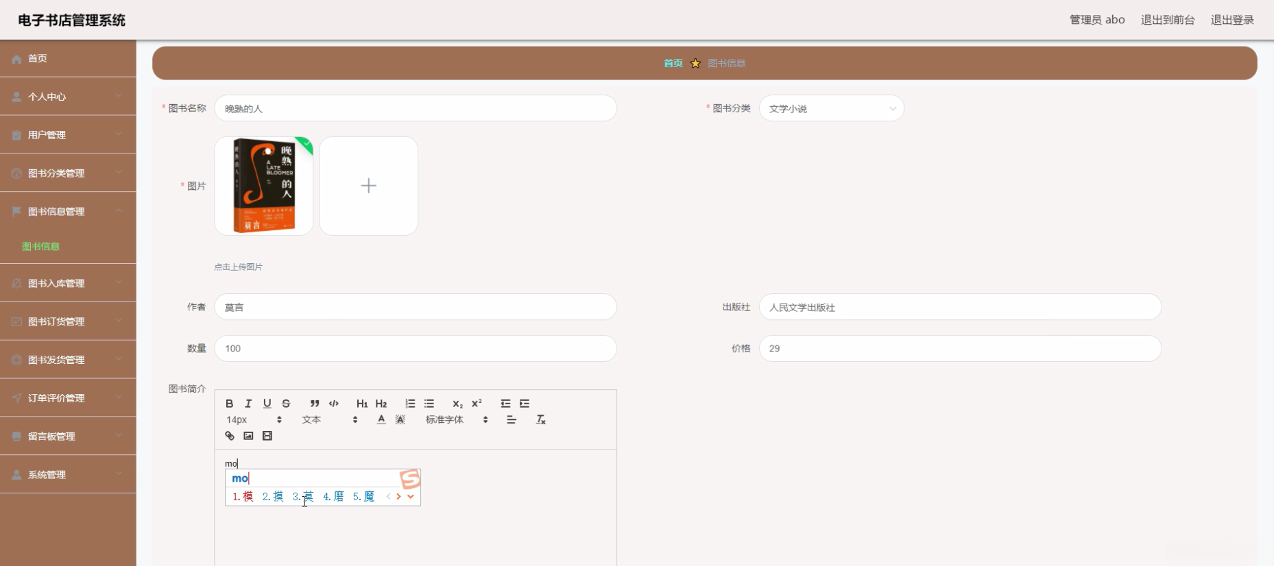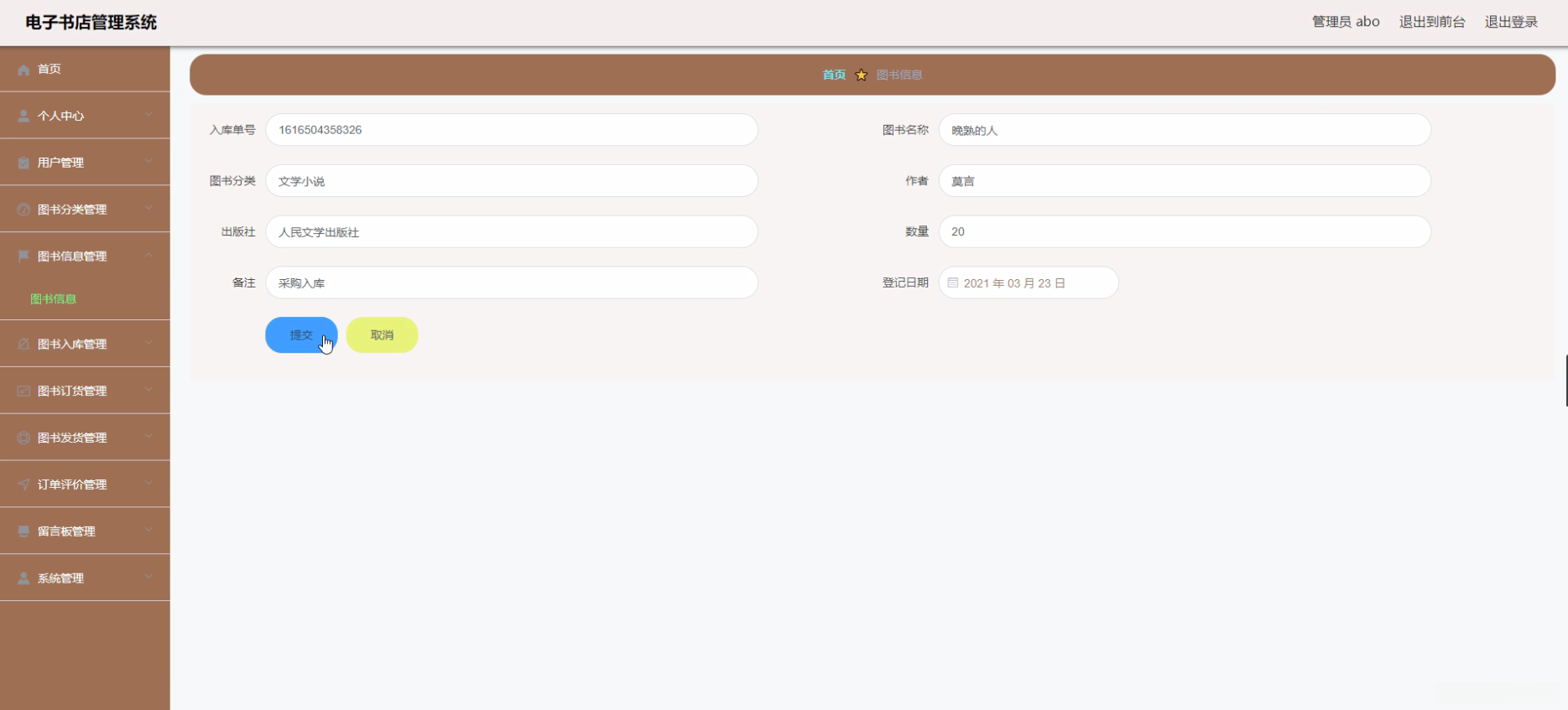 Java毕设项目电子书店管理系统(java+VUE+Mybatis+Maven+Mysql)