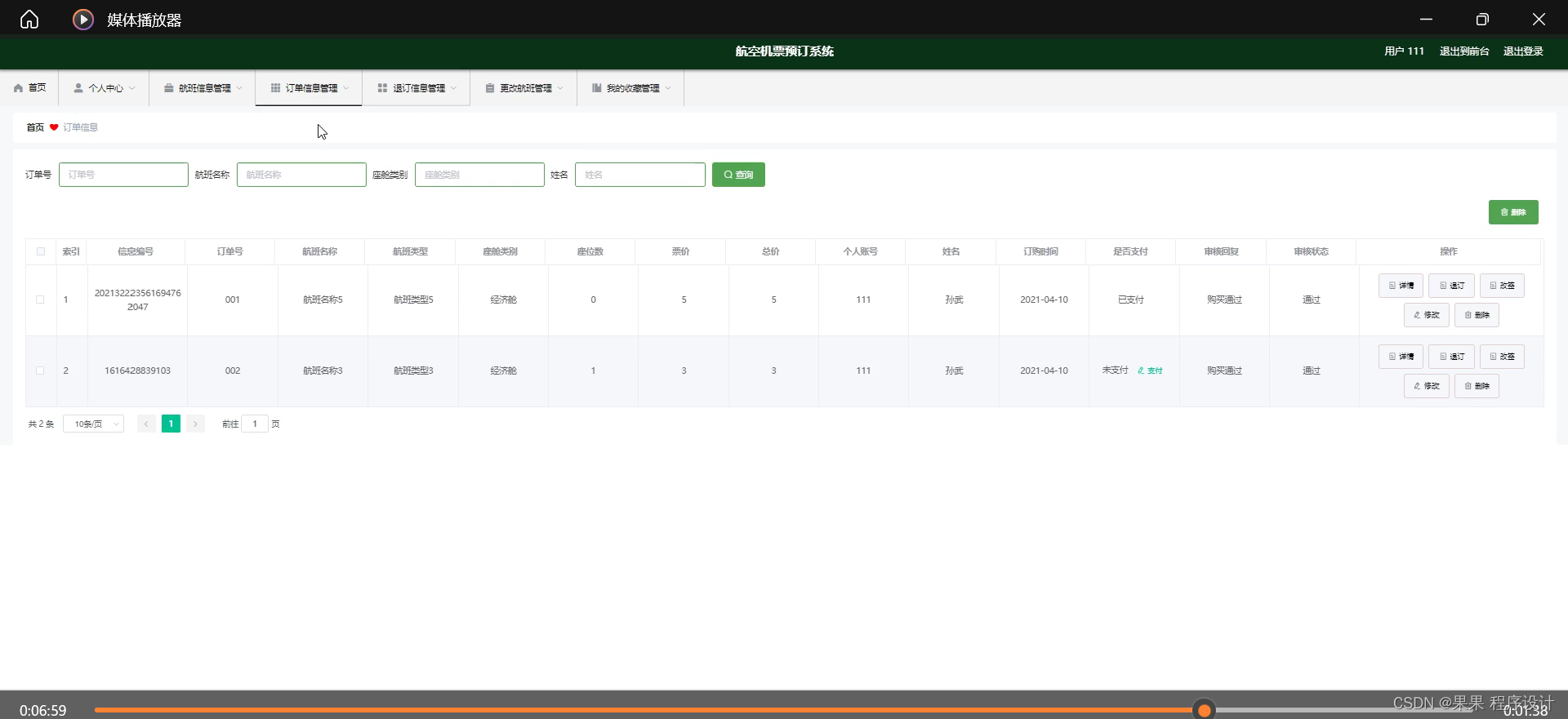 ssm/php/node/python航空机票预订系统(源码+mysql+文档)