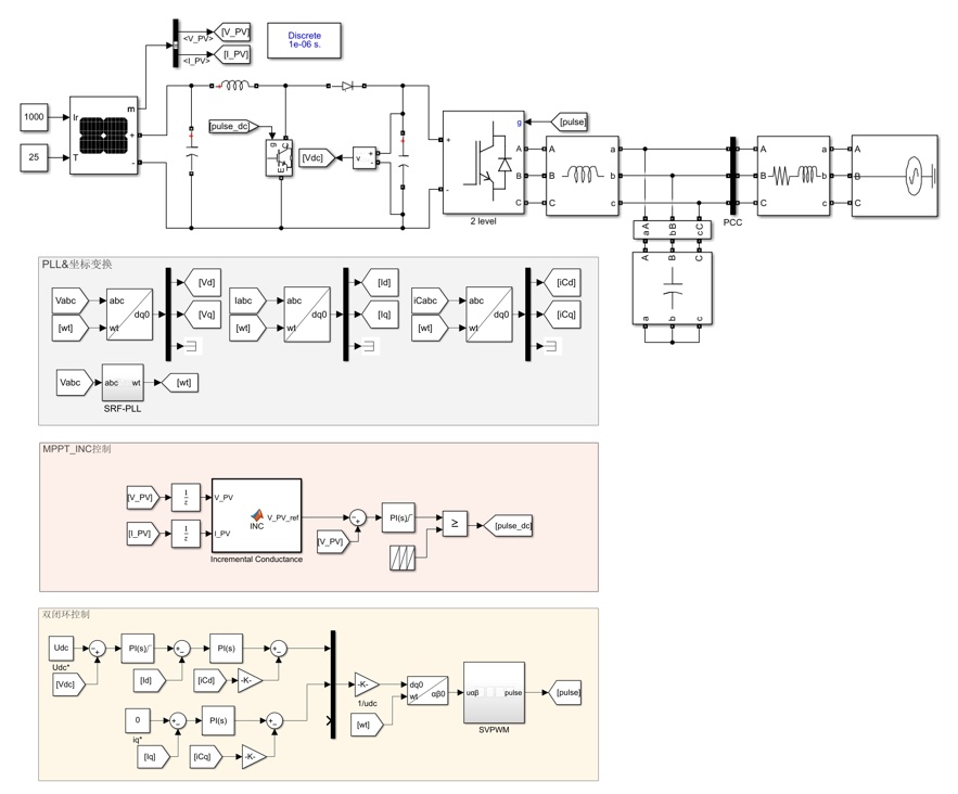 光伏并网研究:基于LCL滤波器和电导增量MPPT法的两级式三相光伏并网模型设计