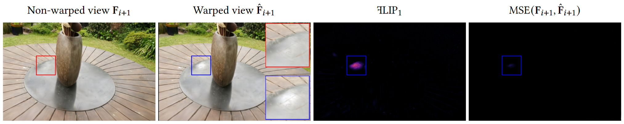 using optical flow and use F LIP to measure errors between warped and non-warped views.