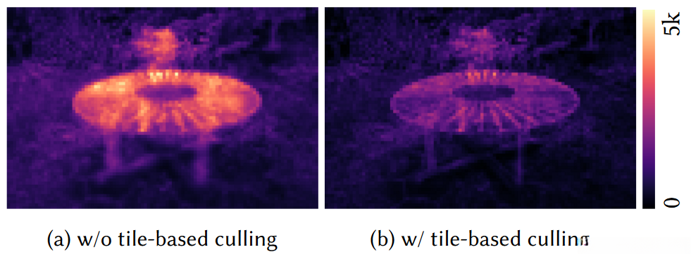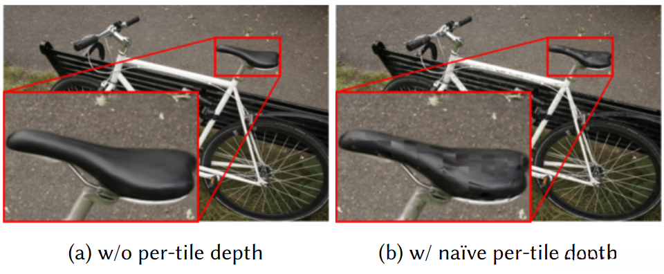 Comparison of 3DGS with and withoutper-tile depth calculation.