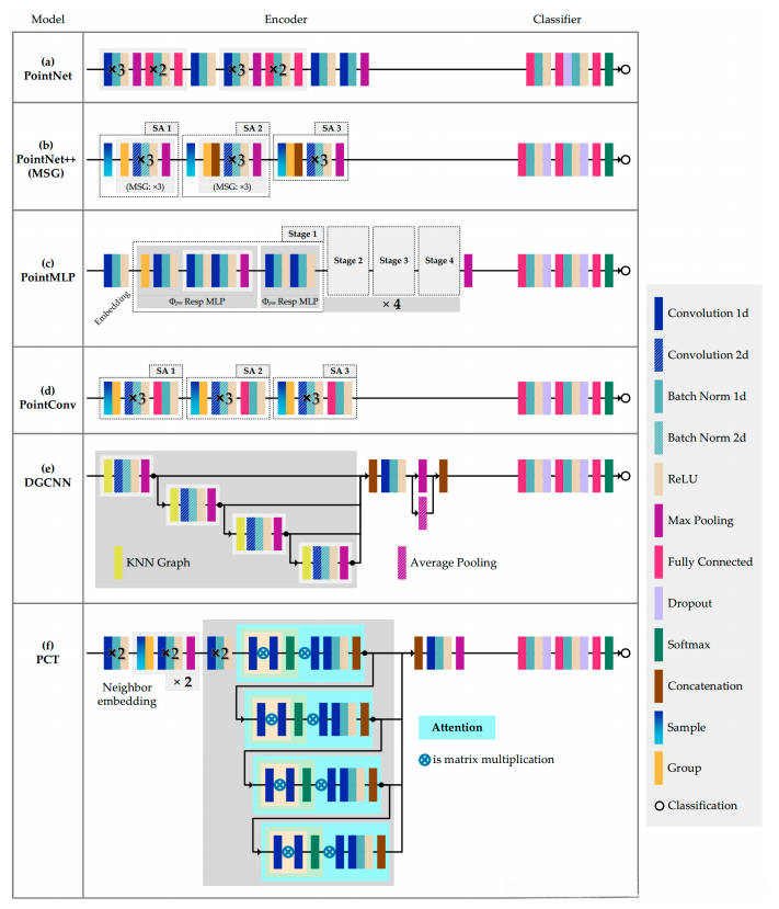 3.2 六种考虑点云深度学习模型的模型结构可视化