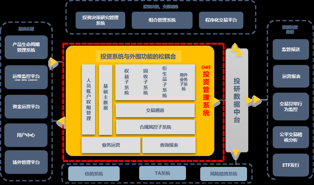 O45平台由松耦合的产品群构成,并提供技术中台、交互接口以及逻辑服务等多种开放性支持。这种架构设计充分考虑到了资管机构的需求,在自研平台开发过程中提供了极大的便利条件。O45平台从投研资讯分析到投研研究管理实现了全流程的支持,并通过与恒生投资交易系统的上下游协同作用实现了研究管理与投资管理之间的高效联动。在资产管理核心业务环节中(如交易执行、风险合规判断等),采用了基于内存交易技术的新一代解决方案。该解决方案通过A UFT全内存极速指令系统用于交易与风控,在多产品管理场景下能够满足高并发交易需求的同时保证低延迟操作。数字化运营系统通过整合运营数据管理与协作功能,在提升智慧运营能力方面发挥了关键作用。同时,O45支持自定义工作台配置方案,可针对不同岗位人员的需求提供千人千面式的客户端配置,从而充分赋能投资经理、交易员等多个业务角色