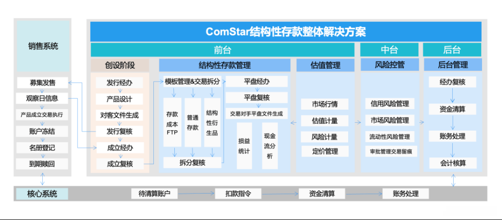 ComStar结构性存款综合服务系统包含前中后台 一站式标准化管理。