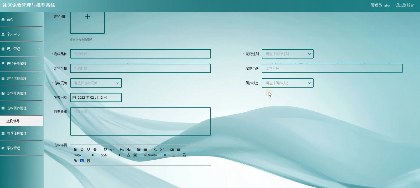 java毕业设计社区宠物管理与推荐系统(Springboot+mysql+jdk1.8+maven3.39)