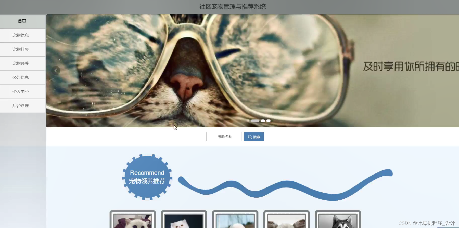 社区宠物管理系统与推荐系统开发不仅能满足社区管理的实际需求,此外还为宠物主人提供了便利的信息服务。同时,这一系统对于学生的技术实践和商业探索同样具有重要意义。