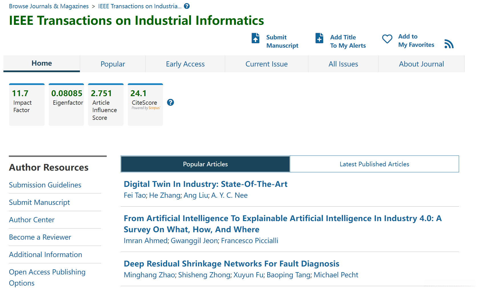 【期刊】【IEEE工业信息学汇刊】【IEEE Transactions on Industrial Informatics】