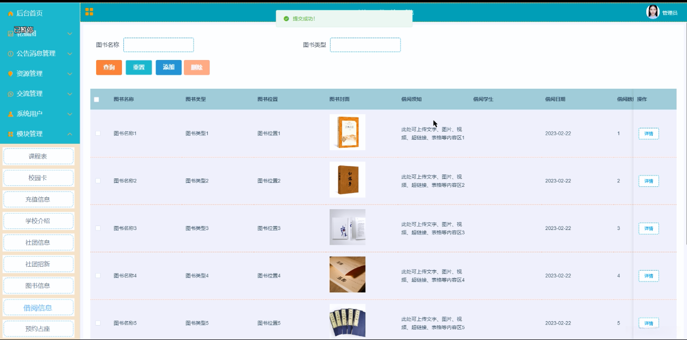 | 预期结果 | 提交以后,页面首页会显示新的图书信息信息 |