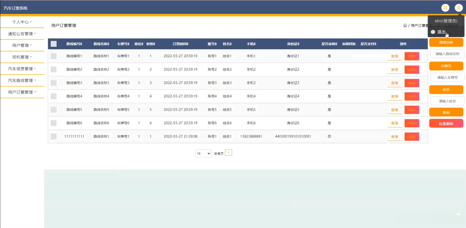 伴随着信息技术迅速发展, 人们对出行便捷性的需求不断提升。传统的汽车订票方式确实存在诸多不便, 如查询余票耗时较长, 购买流程较为繁琐等问题, 这些都严重影响了用户体验。因此, 开发一套高效便捷的汽车订票系统显得尤为必要, 这款系统旨在实现快速查询余票数量, 在线完成购票业务以及提供退票和改签功能, 从而显著提升用户体验并减少人力物力的浪费, 最终目标是提高售票效率