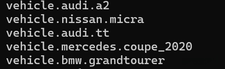 (4) 依次调用get_actor_blueprint()函数,分别生成车辆的蓝图列表bluepeints和行人的蓝图列表blueprintsWalkers。如果是safe模式,则过滤保留只为car的blueprints,并根据id对blueprints排序。