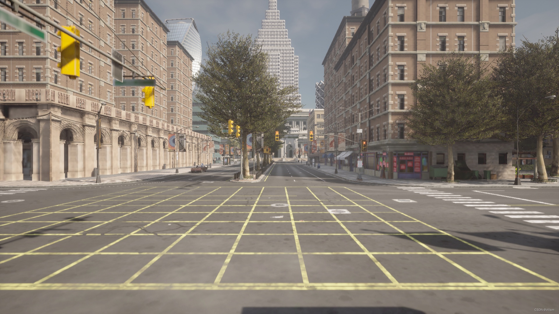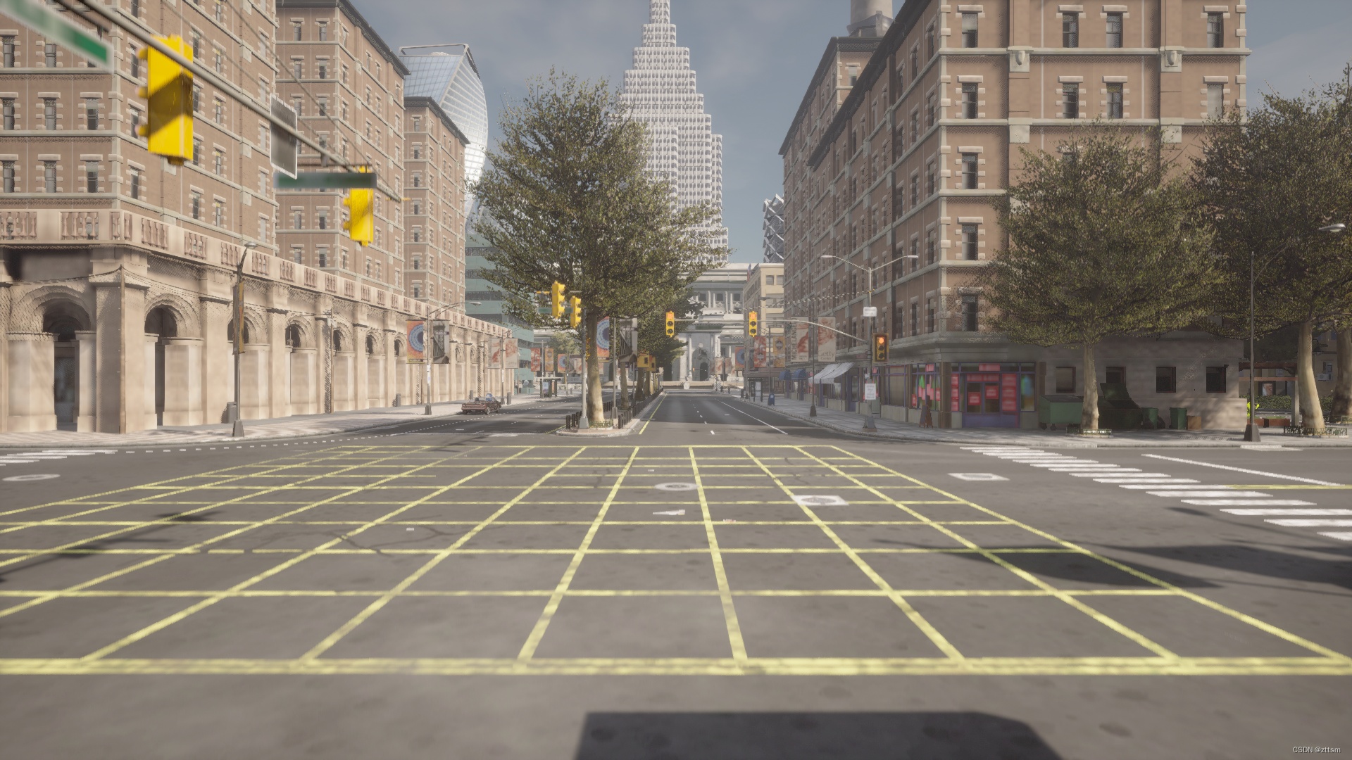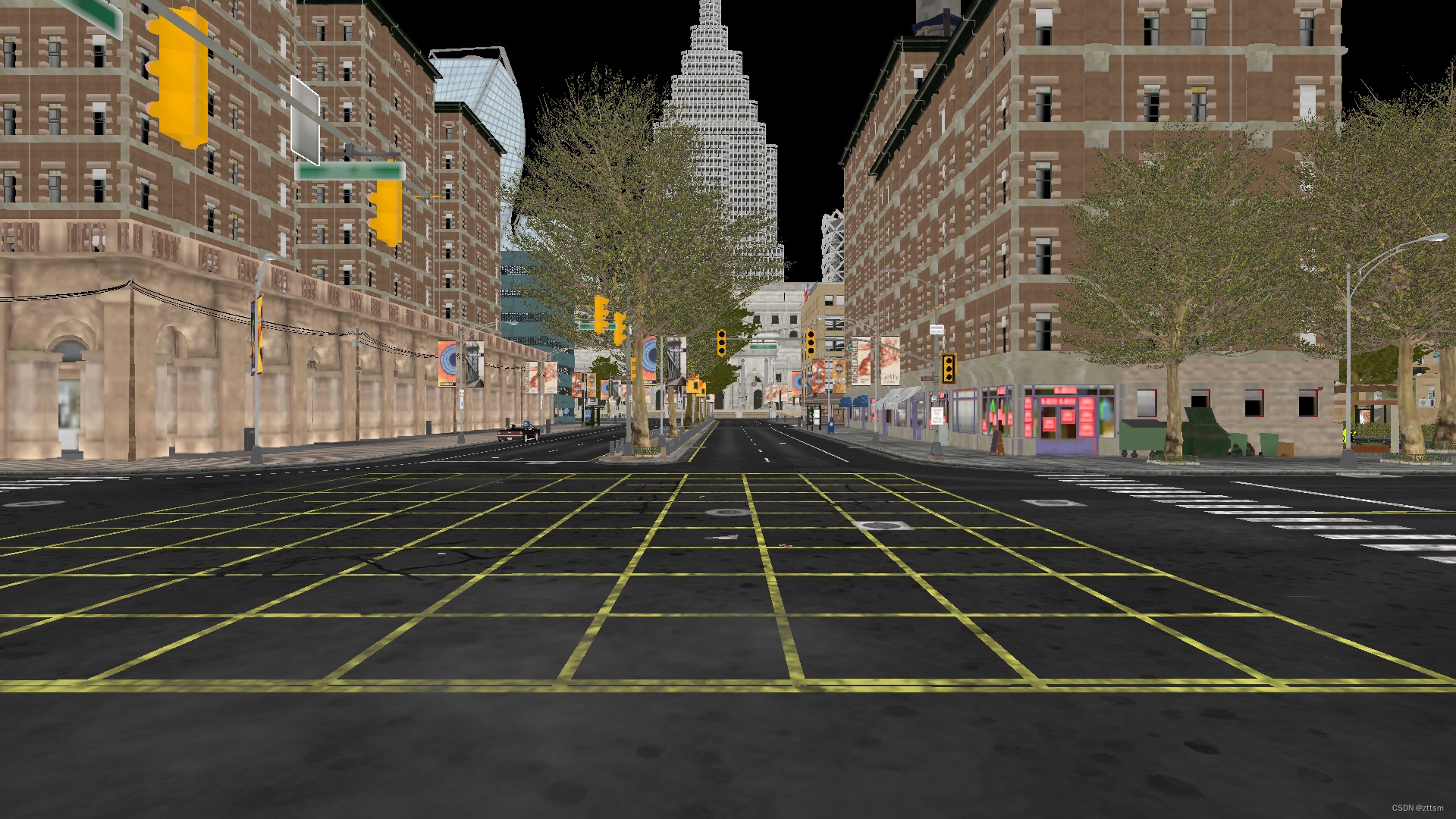 Carla9.14版本提供的的是Town10HD俯视图,如下图所示,附加了在一些比较好视角下的采集图像。