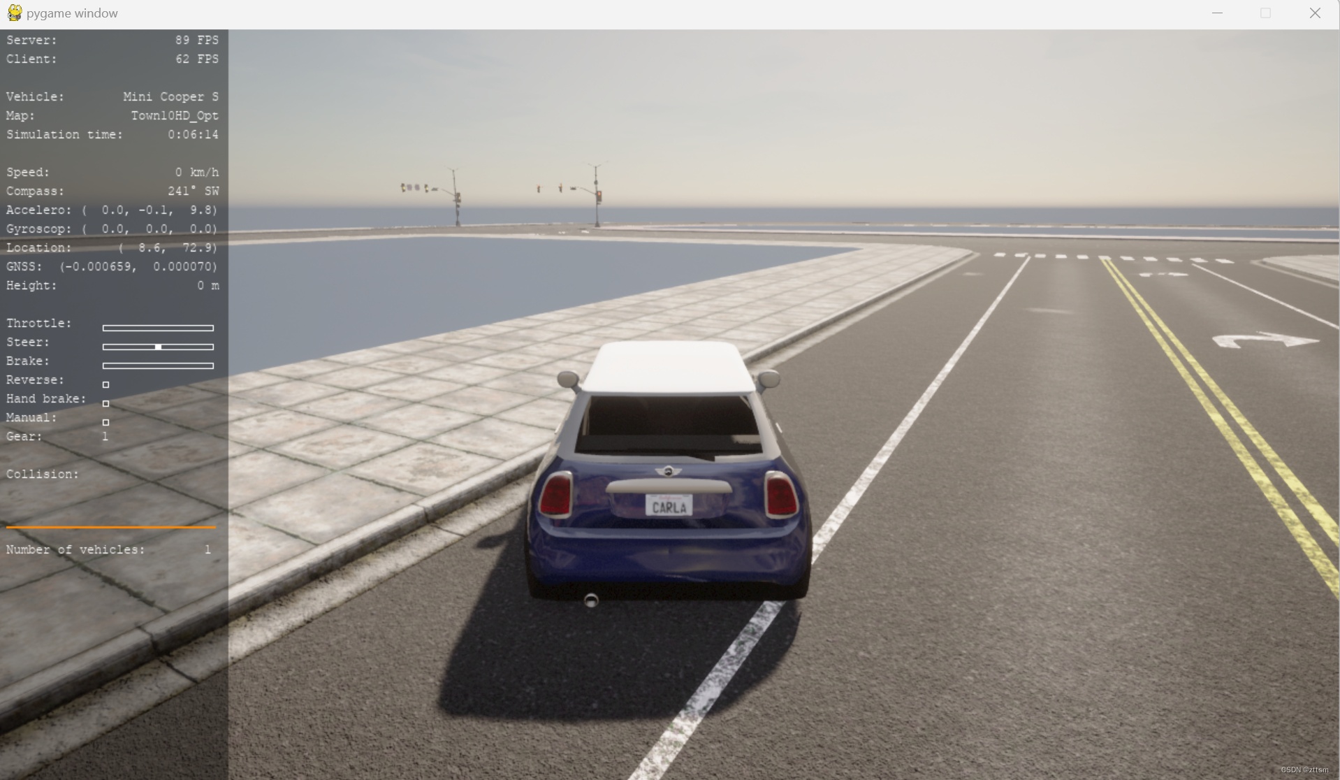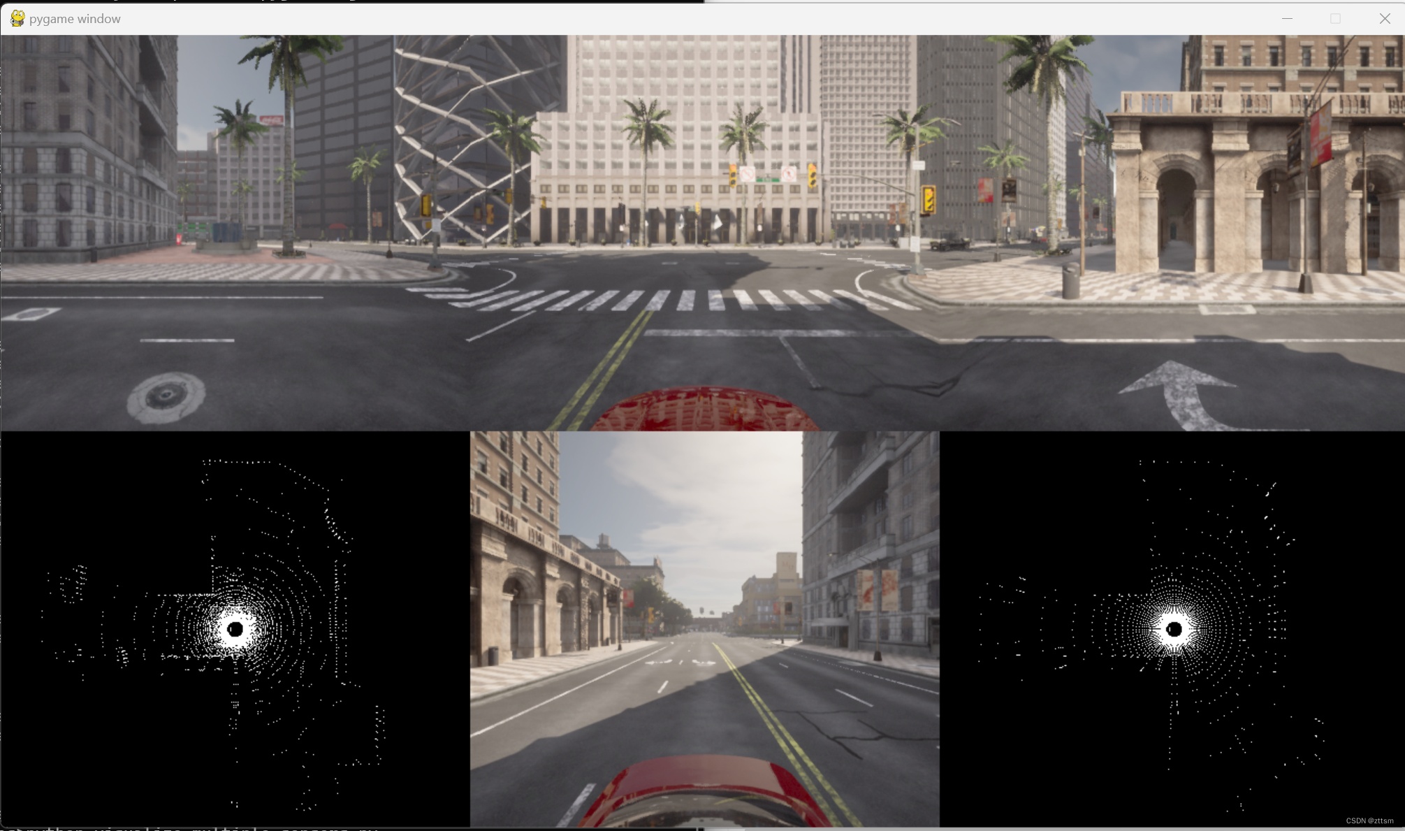 (7)最后,一定要销毁创建的车辆和相机演员.destroy(),否则会存在在世界中使其他程序报错;并恢复carla的异步模式;关闭pygame窗口。