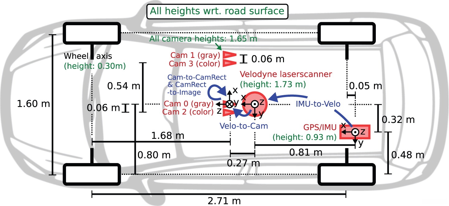 姑且认为RGB相机安装位置为车顶,所以左目RGB相机在车坐标系中的坐标为(x=-0.325,y=-0.06,z=0.825) ,右目RGB相机坐标为(x=-0.325,0.48,z=0.825)